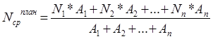 Средний номер смески, Nср