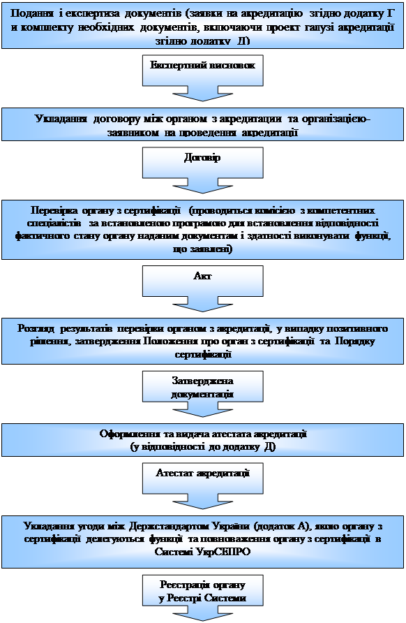 Вимоги до органів з сертифікації продукції і порядок їхньої акредитації регламентовані положеннями стандарту ДСТУ 3411-96.