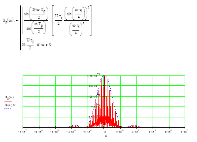 Рис.1.5 Спектральная плотность пачки видеоимпульсов Используя теорему о спектре смещённого во времени сигнала имеем: