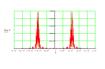 Расчет спектральной плотности пачки радиоимпульсов показал, что спектр получается путем сдвига амплитудного спектра огибающей на частоту ±w, а максимум амплитуды спектра частот лежит тоже на этой частоте (см. рис.1.6).