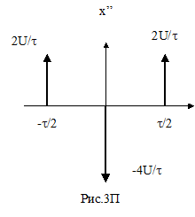 Дифференцируя исходный сигнал (4) (см. приложение рис. 1П), получаем два разнополярных прямоугольных импульса (см. приложение рис. 2П), вторая производная имеет вид трех d-функций (см. приложение рис. 3П). Математическая модель производной такова: