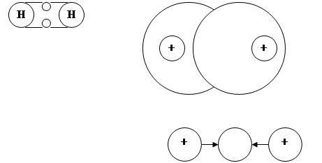 связи двух атомов возникает обобществленная пара электронов, по одному от каждого атома (пример – молекула водорода). Оба атома притягивают эту пару электронов с одинаковой силой, и электроны (или электронное облако) находятся большее время между ними. Если ковалентная связь образуется между атомами разных элементов, то электронное облако оказывается смещенным, т.е. большее время находится ближе к более притягивающему атому. Такую связь называют полярной, или электрически несимметричной (в последнем случае одна приближается к ионной).
