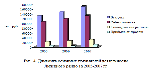 4. Наблюдается рост коммерческих расходов в динамике. Значительное превышение по сравнению с 2005 годом темпа роста коммерческих расходов над темпом роста выручки свидетельствует о том, что не все затраты были связаны с реализацией товаров.