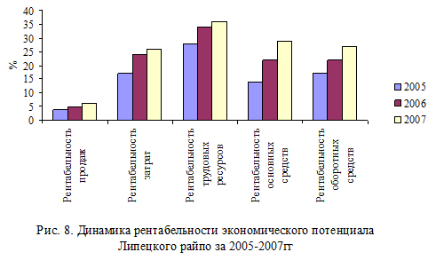 7. Рассчитанные показатели рентабельности свидетельствуют о невысокой эффективности использования основных средств, оборотных средств и трудовых ресурсов, но положительна в динамике.