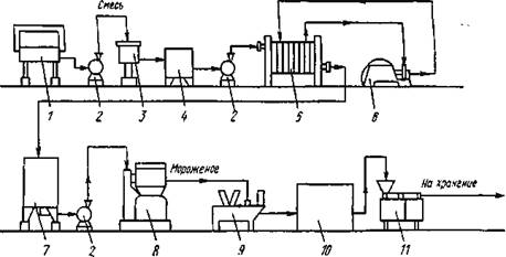 В мороженом молочный жир находится в виде мельчайших жировых шариков, окруженных липопротеиновыми оболочками. Белки оболочек жировых шариков отличаются повышенным содержанием таких незаменимых аминокислот, как аргинин, фенилаланин и треотин. Благодаря тонкодисперсному состоянию жира облегчается его усвояемость, что увеличивает пищевую ценность мороженого. Белки в мороженом на молочной основе представлены в основном казеином; сывороточные белки – альбумин и глобулин – частично коагулируют при пастеризации смесей мороженого. Кроме этих белков, как уже указывалось, в мороженом находятся белки оболочек жировых шариков. Белки мороженого являются полноценными белками и усваиваются лучше других пищевых белков.