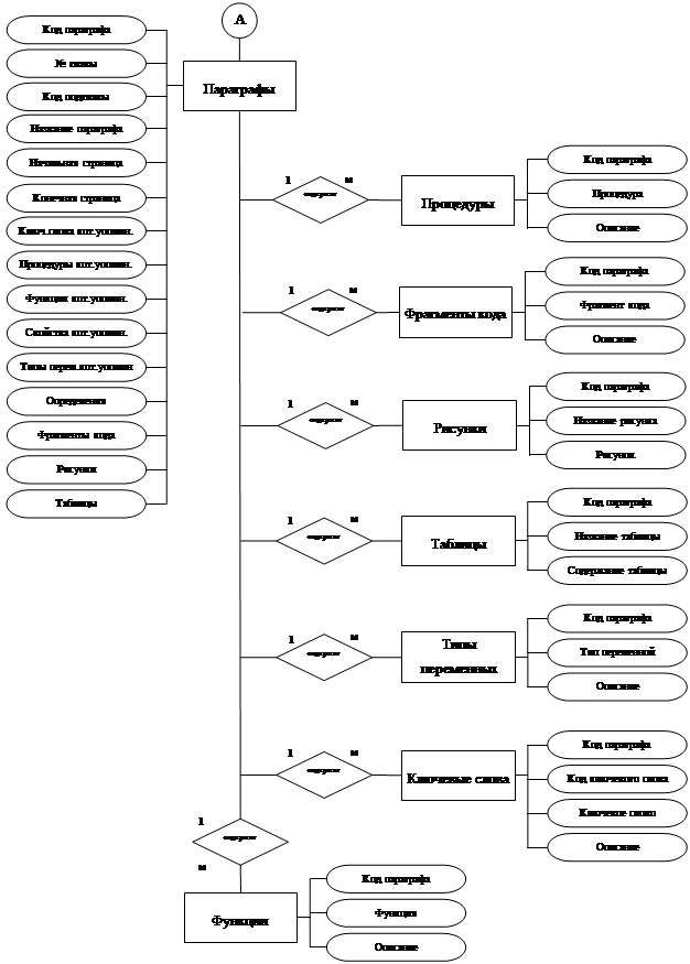 Основною формою є форма «Параграфы» (Рисунок 2.3.28), так як вона містить інформацію про вміст параграфів посібника (її назву, початкову та кінцеву сторінки, функції, ключові слова, процедури, властивості компонентів, типи змінних, що згадуються; визначення; дані про таблиці, функції та фрагменти коду, що містяться).