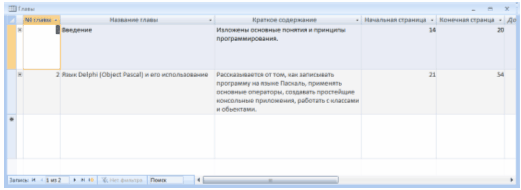 Рисунок 2.3.1 – Таблиця «Главы»