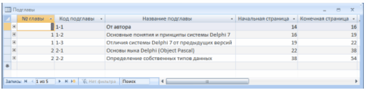 Рисунок 2.3.2 – Таблиця «Подглавы»