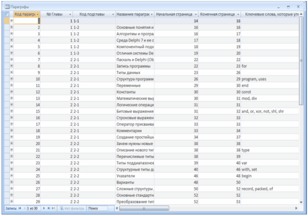 Рисунок 2.3.4 – Таблиця «Параграфы»
