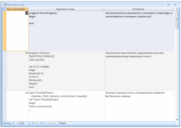 Рисунок 2.3.6 – Таблиця «Фрагменты кода»