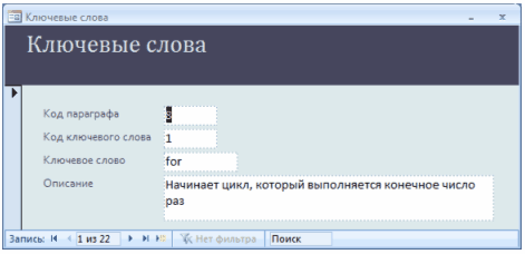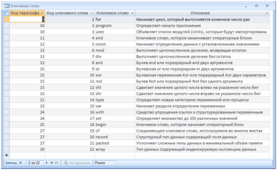 Рисунок 2.3.8 – Таблиця «Ключевые слова»
