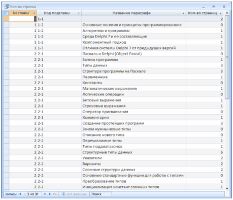 Рисунок 2.3.15 – Робота запиту «Кол-во страниц в параграфах»