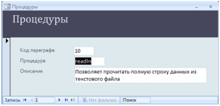 Рисунок 2.3.36 – Форма «Процедуры»