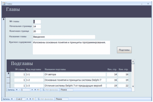 Рисунок 2.3.27 – Форма «Главы»