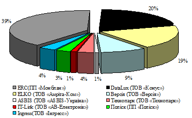 На рис. 1.1. представлено структуру українського ринку ноутбуків за виробниками у першому півріччі 2008 року. [12]