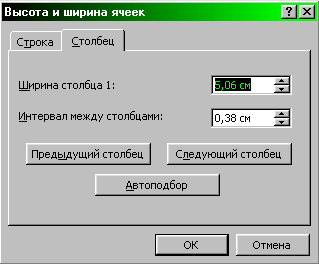 Ширину столбцов и высоту строк можно изменять как с помощью мыши, так и в окне диалога, выбрав команду Высота и ширина ячейки из меню Таблица. Обратите внимание на кнопку Автоподбор. Ее нажатие позволяет установить ширину столбца точно по размеру содержащегося в нем текста.