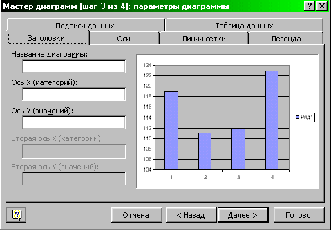 В вод интервала данных (нового или подтверждение выделенного). Мастер диаграмм (названия, легенды и подписи).