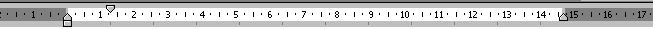 Треугольник на масштабной линейке (слева направо) означает соответственно маркеры левого поля, отступа первой строки и маркер правого отступа. Перемещая их мышью при нажатой левой кнопке вдоль масштабной линейки, можно быстро изменять абзацные отступы.