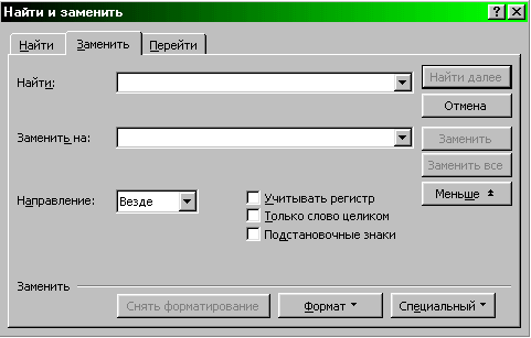 Список может быть нумерованным или маркированным. Способ нумерации, символ, формат абзацев списка можно изменить, нажав кнопку Изменить в окне диалога “Список”. Кроме того, список можно отсортировать (команды Таблица Сортировка текста). Традиционными операциями при редактировании документа являются поиск (Правка Найти), замена (Правка Заменить) и проверка орфографии (Сервис Орфография). При изучении окна диалога “Заменить” обратите особое внимание на то, что находить и заменять можно не только фрагменты текста, но и форматы, а также специальные символы (например, маркер абзаца, пустой пробел и др.).