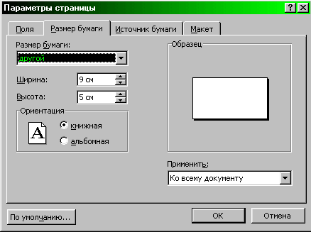 Если на экране появится сообщение “В некоторых разделах верхнее/нижнее поле превышает размер страницы”, то в том же окне диалога выберите другую вкладку Поля и установите размеры всех полей 0 см.