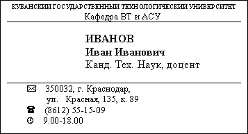 Ниже приведен вариант визитной карточки Иваново И.И. с использованием специальных символов: