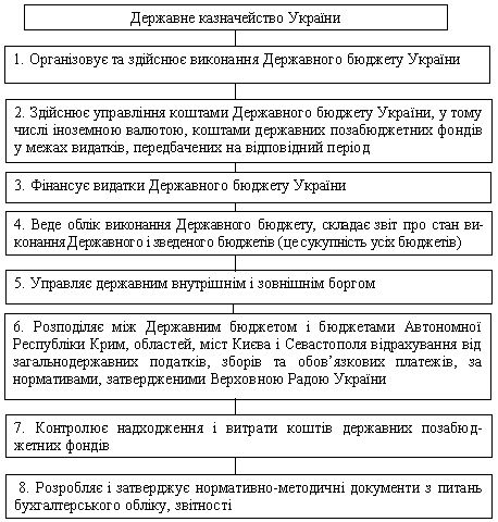 — ведення обліку касового виконання Державного бюджету України, складання звітності про стан виконання Державного бюджету України;