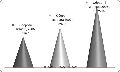 Рис.1.1. Динаміка оборотних активів СФГ «Оріон» у 2006 – 2008 роках, тис.грн.