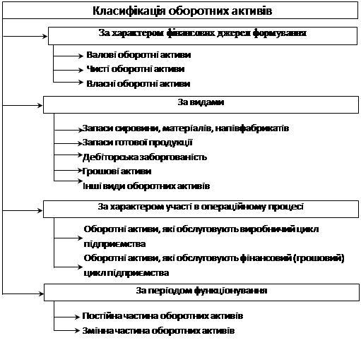 Рис. 1.2. Класифікація оборотних активів підприємства за основними ознаками