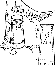 Хорошо развешивать гнездовья на крючке. При этом дерево совершенно не портится, и, кроме того, такое развешивание можно производить с земли при помощи длинной жерди.