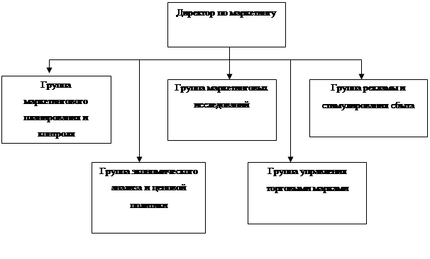 - департамент маркетинга имеет в своем составе группы (отделы), которые планируют, организуют и контролируют выполнение определенных маркетинговых функций компании;