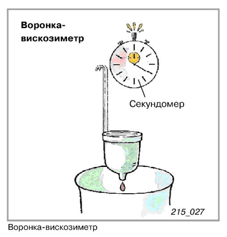 Вязкость краски может быть определена при помощи специальной воронки. Такая измерительная воронка имеет строго определенное по размерам отверстие. Замеряется время, за которое воронка опустошается. Чем больше это время, тем выше вязкость.