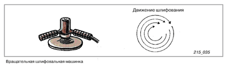 Шлифовальная бумага совершает вращательное движение. Башмак машинки круглый. Преимущества: Возможно очень агрессивное шлифование, Идеальна для грубого шлифования. Возможно ускоренное шлифование. Недостатки: Большое нагревание. • Затрудненное шлифование ровных поверхностей. Применение: Удаление старой краски. Подготовка металла под шпатлевание. Удаление ржавчины.