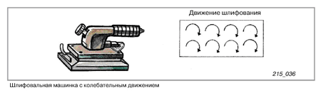 Шлифовальная шкурка совершает вращательные и колебательные движения. Башмак машинки круглый. Преимущества: • Хорошая управляемость при высокой производительности. • Небольшое нагревание. Недостатки: Башмак следует при шлифовании вести параллельно относительно поверхности, иначе остаются глубокие риски. Не подходит для шлифования шпатлевки на ровных поверхностях. Применение: Шлифование слоя краски. Хорошо подходит для окончательной обработки грунта.  Необходимо принимать во внимание следующее: Для грубого шлифования, например, слоя шпатлевки, необходимо применять машинки с ходом 5-10 мм. Для чистового шлифования, шлифования наполнителя или слоя старой краски следует использовать машинки с ходом 3-5 мм.