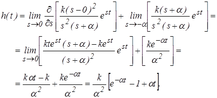 При этом переходную функцию определяем, используя вычеты по полюсам подынтегральной функции