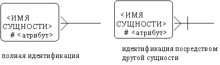 - это атрибут или совокупность атрибутов и/или связей, предназначенная для уникальной идентификации каждого экземпляра данного типа сущности. В случае полной идентификации каждый экземпляр данного типа сущности полностью идентифицируется своими собственными ключевыми атрибутами, в противном случае в его идентификации участвуют также атрибуты другой сущности-родителя (рисунок 2.24).