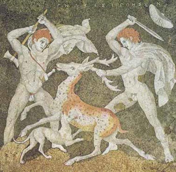 Охота на оленя. Мозаика из дворца македонских царей в Пелле
