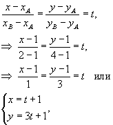 Составим сначала параметрическое уравнение прямой AB