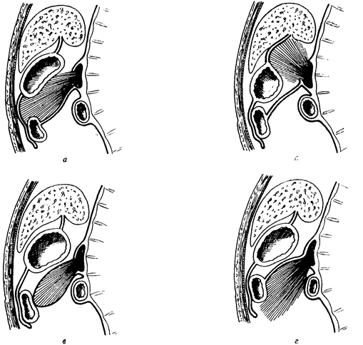 связки, может выпячивать и малый сальник. Иногда киста выпячивается впе