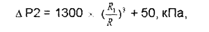 Избыточное давление в зоне действия продуктов взрыва изменяется от 1350 до 300 кПа и определяется по формуле: