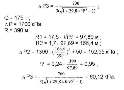 Избыточное давление в зоне детонации принимается постоянным и равным а Р = 1700 кПа.