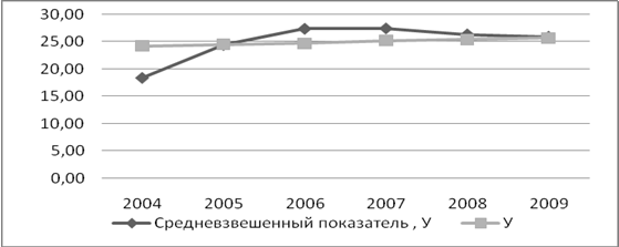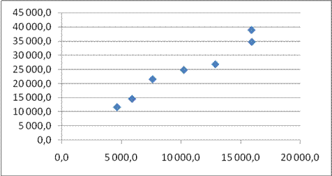Итак, полученное уравнение можно считать верным: средняя ошибка аппроксимации не превышает критического значения, показатель детерминации показывает, что 95% результирующего признака объясняется зависимой перемен.