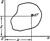 у знака интеграла указывает на то, что интегрирование ведется по всей площади сечения. Каждый из интегралов представляет собой сумму произведений, элементарных площадокdF