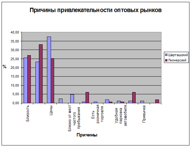 · выявить разницу отношений к оптовым рынкам населения районов, насыщенных данными предприятиями, и ненасыщенных таковыми,