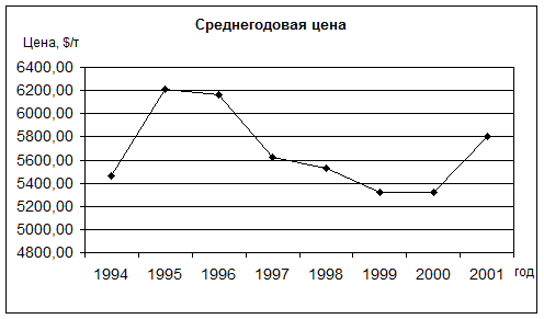 Цены составляли (в июне 1999 г.), $/т.:
