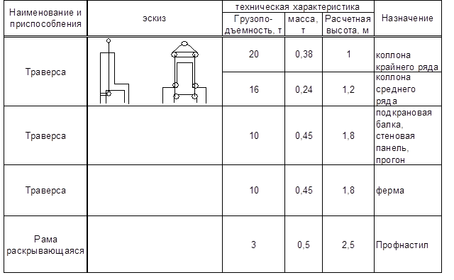 Принимаем поперечную схему движения крана (т.е. кран движется поперек пролета здания). С первой точки стоянки крана монтируется четыре колонны, одна подкрановая балка (наружного ряда) и две фермы покрытия. Затем монтируются прогоны и профнастил (совместно), до монтажа последней нитки профнастила монтируются две подкрановые балки (среднего ряда), затем со второй стоянки крана монтируют две колонны следующего ряда и т.д.