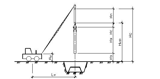где — минимальное расстояние от конструкции стрелы до монтируемого элемента (0.5м) или между конструкцией стрелы и ранее смонтированными конструкциями здания (0.5...1.5м).