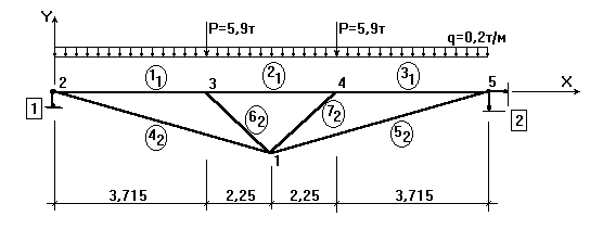 Для подготовки исходных данных составляется расчетная схема конструкции с указанием размеров, нагрузок и сечений стержней.