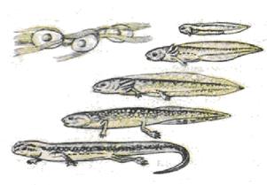 Земноводные, или амфибии, что в переводе с греческого означает двоякодышащие, сильно отличаются от других позвоночных. Они появились на Земле более 300 млн. Лет назад. В их жизни нужно различать два периода: на начальной стадии развития они сходны с рыбами, а затем постепенно превращаются в животных с лёгочным дыханием. Таким образом, в цикле развития земноводных имеет место превращение, которое почти не встречается у других позвоночных, и наоборот, широко распространено у низших, беспозвоночных.