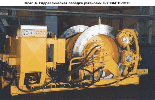 На установках К-703МТП-127Г применяется гидроприводная лебедка фирмы «Лидан Марин АБ» (Швеция). Основой лебедки является гидравлический привод барабана от высокомоментных гидромоторов «Викинг», соединенных непосредственно с барабаном.