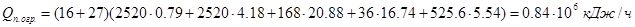 где – потери теплоты через ограждающие конструкции зданий, кДж/ч;
